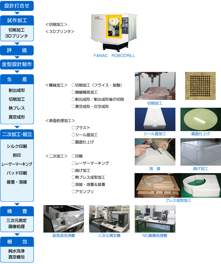 | ◆24時間恒温恒湿の検査室 ◆3次元測定器及び画像測定機による測定 ◆工程内検査のダブルチェック、初品検査 ◆重要箇所の検査データ管理の徹底 ◆システムによる生産管理 ◆ISO9000 取得 |